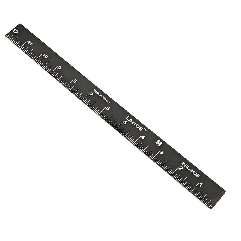 Lance® Black Anodized Engraved Rulers (BRL) are designed for demanding environments. Constructed of black, anodized, hardened aluminum, .090" thick and 1" wide. The calibrations are engraved for extreme durability. Right-to-left reading with numbers on bottom edge.